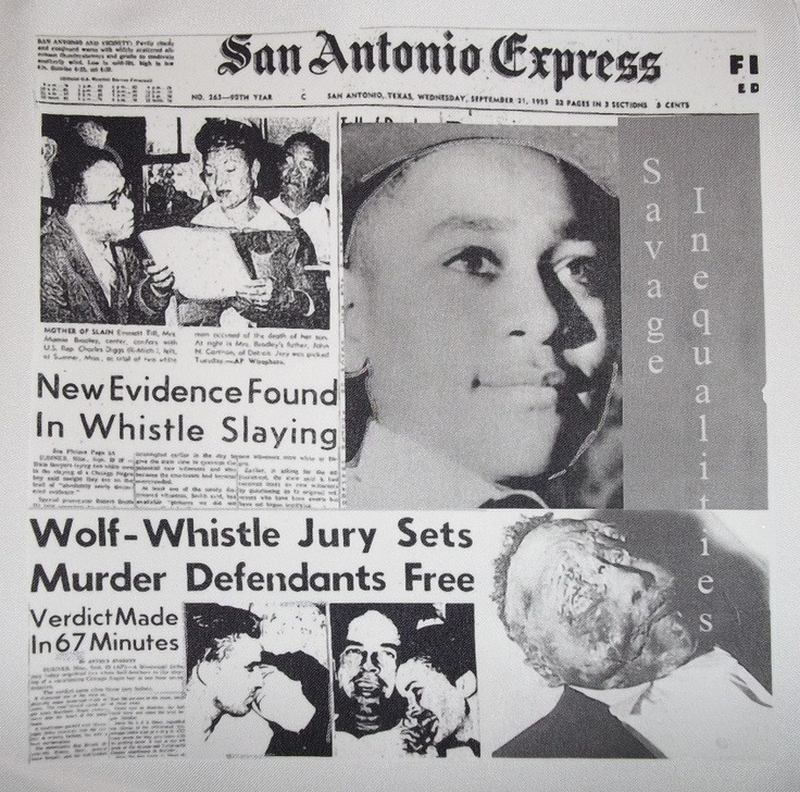 Images of Emmett Till, his mother, and the historic photo of Emmett’s mangled features that she wanted us to see: